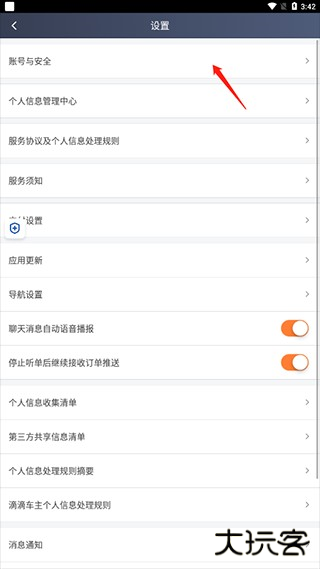 3、在设置中选择账号与安全;