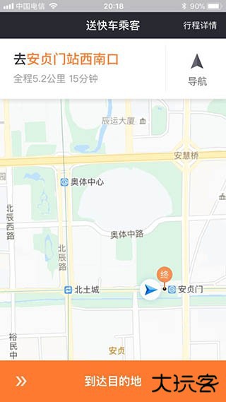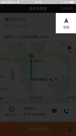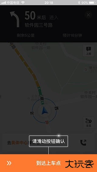 8、接到乘客后就导航去乘客设定的目的地吧,到你把乘客送到目的地后,记得滑动选择到达目的地。