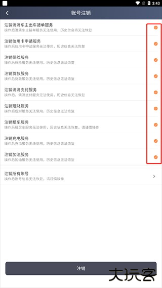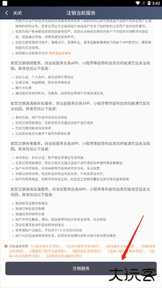 6、最后勾选同意协议,点击注销服务就可以注销滴滴车主账号。