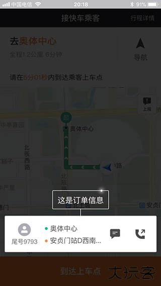 3、系统会自动派单给你,系统自动帮你派单后,你会在页面下方得到信息,哪里上车,去哪儿,你就知道路线了。