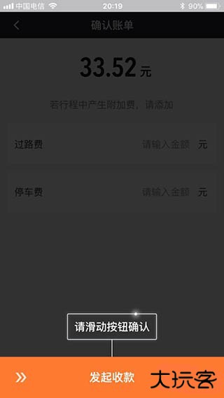 11、把所有的金额输入完成后,你继续滑动下方的发起收款,此时系统会推送这个收款信息给乘客,推送到乘客的APP里乘客就会进行支付。