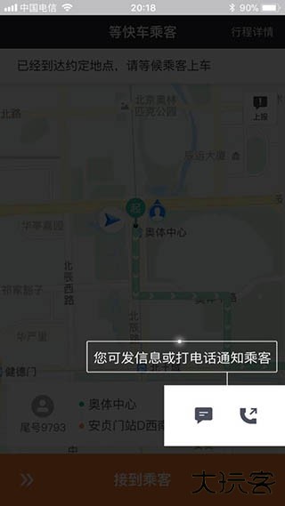 7、如果你发现乘客不在上车点,你可以点击短信或者电话,联系乘客,知道乘客是什么情况还没到达。