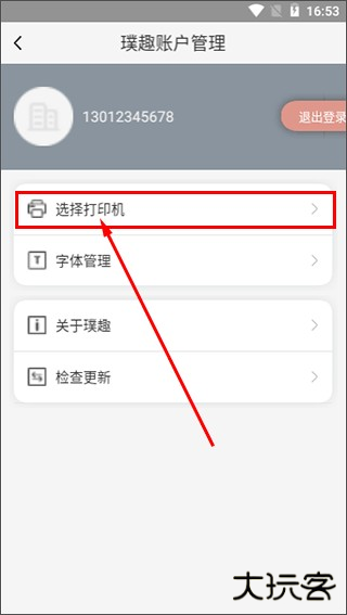1、通过本站下载并安装璞趣打印机app,进入软件后注册账号登录,在个人信息页面点击“选择打印机”;