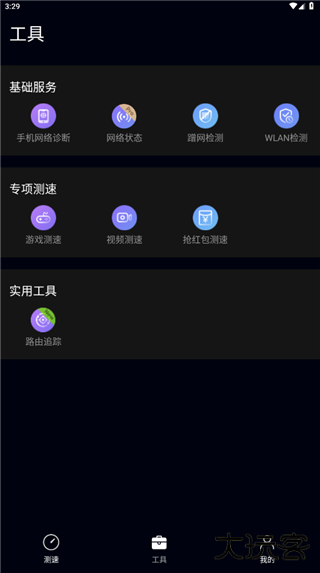 4、另外,在工具板块还提供游戏测速、蹭网检测等功能