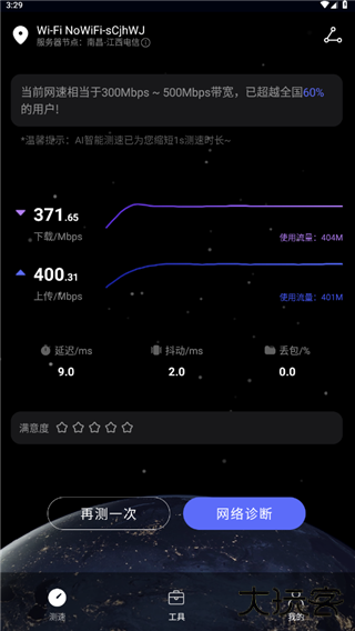 3、还会将你的网速进行简单的结果描述