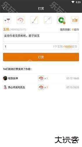 如何给作者玉佩?