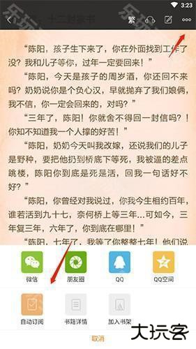 2、进入阅读界面,点击顶端的“三点”按钮,然后取消自动订阅即可。