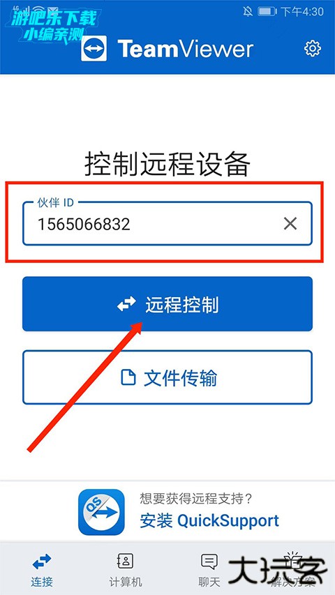 输入目标设备的TeamViewer ID(固定不变)
