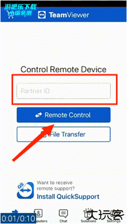 1、打开手机上的TeamViewer app,在伙伴ID栏目中“Partner ID”输入伙伴ID号,选择“Remote Control/远程控制”选项,