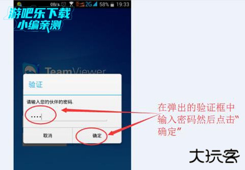 4、在“请输入您的伙伴密码”栏目中,输入电脑端的密码,选择右下角“确定”选项,