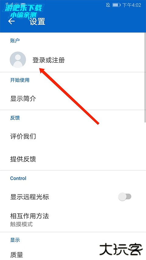 2、进入到设置界面,选择“登录或注册”选项,