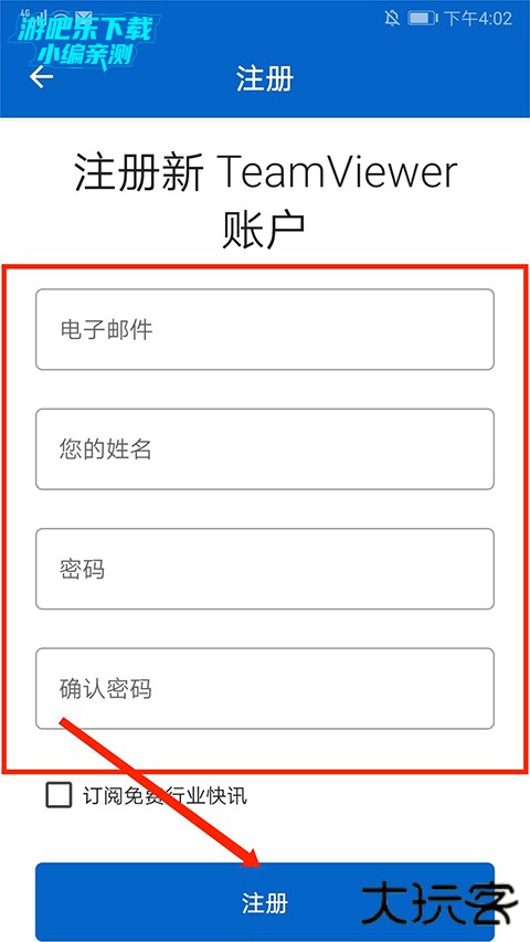 4、填写“电子邮箱”、“姓名”、“密码”和“确认密码”后,选择下方“注册”即可。