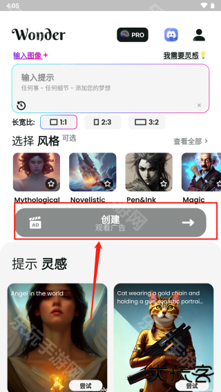 4、最后一步,我们只需要点击创建就行了,需要看广告哦,大概30秒左右。