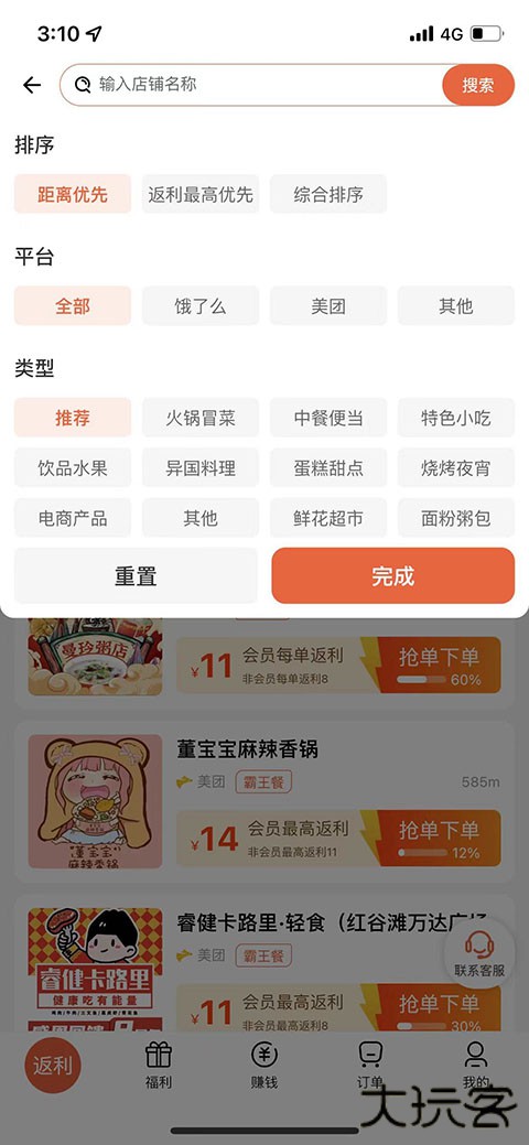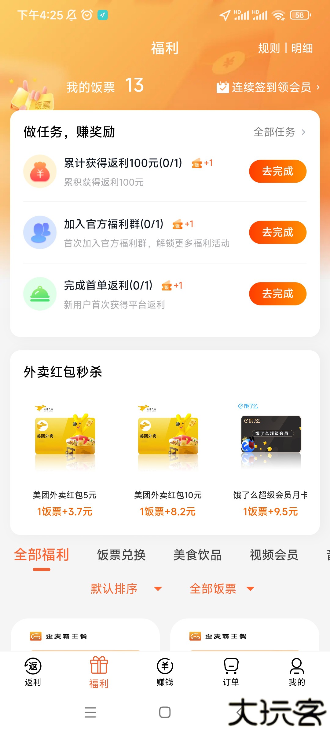 3、在首页中抢单下单,可以返利现金,饭票在这里也可以使用。