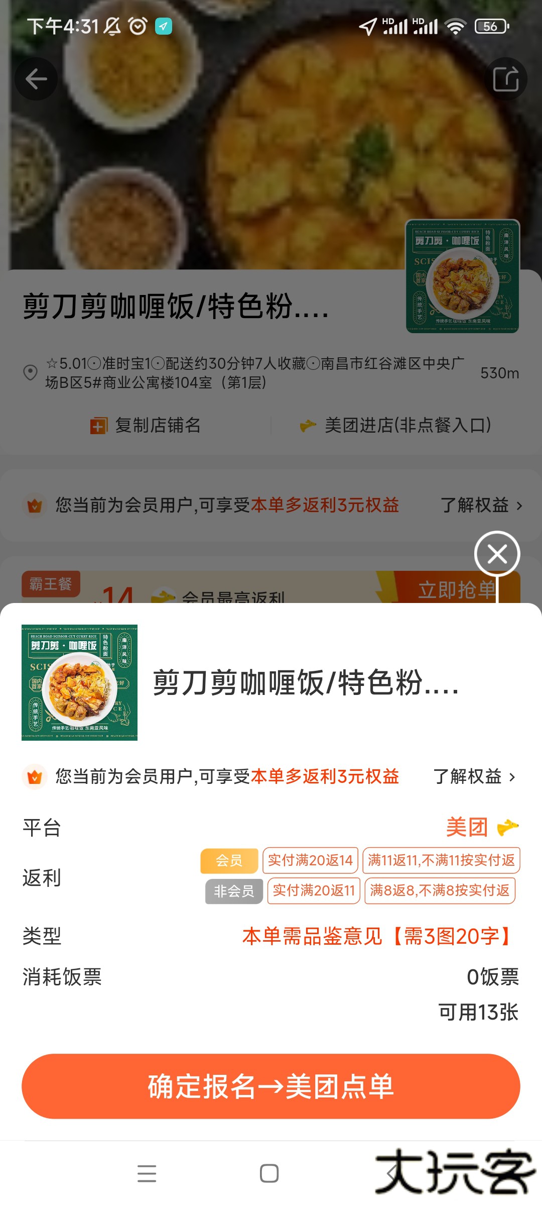 4、使用饭票成功抢单霸王餐,后续按照流程操作即可。