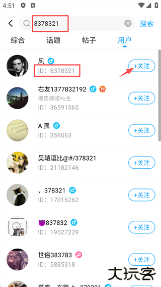 5、这样就可以轻易找到朋友的账号了,点击“关注”即可。