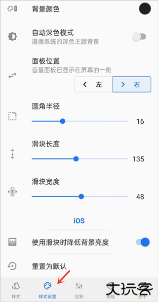 3、点击最下方的样式设置,可以设置样式的背景颜色、模式、面板位置、半径、长度、宽度等等,大家可以自己探索一下。