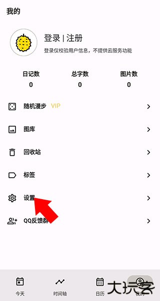 1、打开榴莲日记,点击右下角“我的”,点击设置选项;