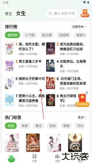 2、比如小编选择的是女生小说,进入后就是女频频道