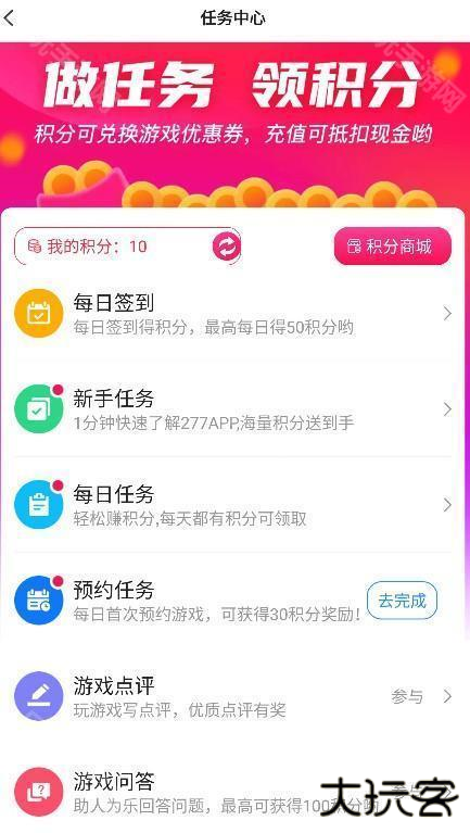 3、完成游戏平台发布的任务可以领积分,领取到的积分可兑换游戏优惠券,充值可抵扣现金。