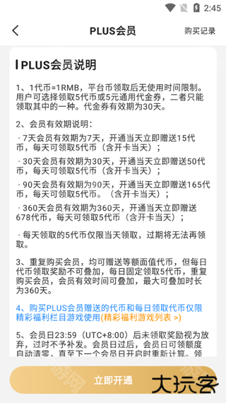 30天会员有效期为30天,开通当天立即赠送50代币,每天可领取5代币(含开卡当天) ;