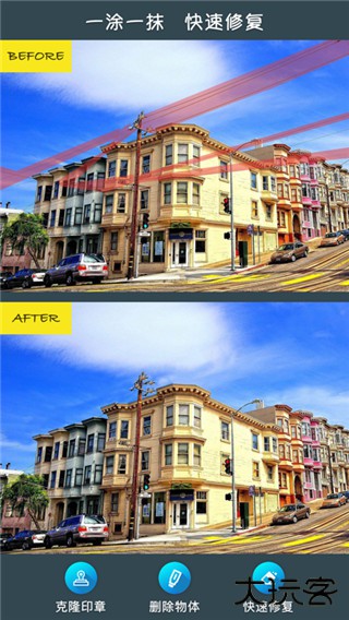 3、删除物体:拍照担心被乱入?照片有水印?垃圾桶路标不美观?皮肤有瑕疵? 不用担心,删除物体,可以删除(retouch)你认为破坏照片美观的任何对象。