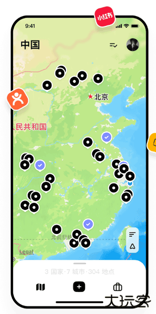 用户可以用文字、图片和视频记录旅行点滴,自动生成带地理坐标的旅行日记,还可按照旅行地点和时间分类。