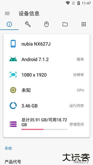 2、轻松获取设备信心,包括设备型号、CPU信息、运行内存、存储空间、屏幕信息等