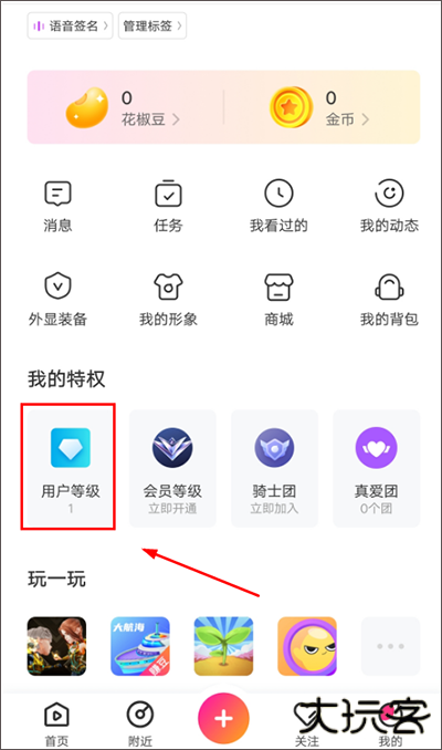 [我的] -切换为[用户] - [我的特权] - [用户等级]