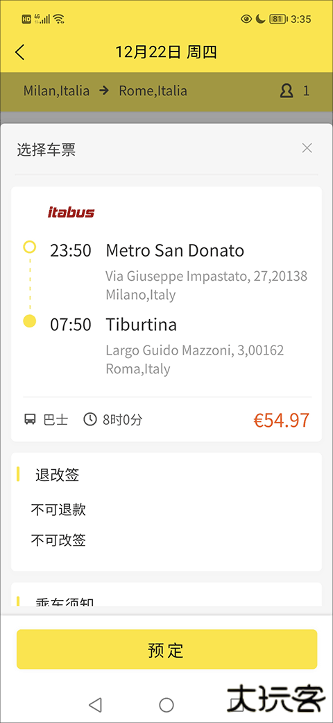 3、接着,在看清楚车票内容后就可以点击预定了;