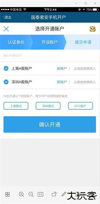 5、沪深A股账户默认勾选直接确认开通,确认开户回访
