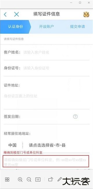 3、上传身份证,填写并核对身份信息,联系地址精确到门牌号(请拍摄并上传身份证的正、反面照片,切记,照片一定要对焦清晰拍摄四角无遮挡反光。居住地址精确到门牌号以便我们的员工审核您的信息)