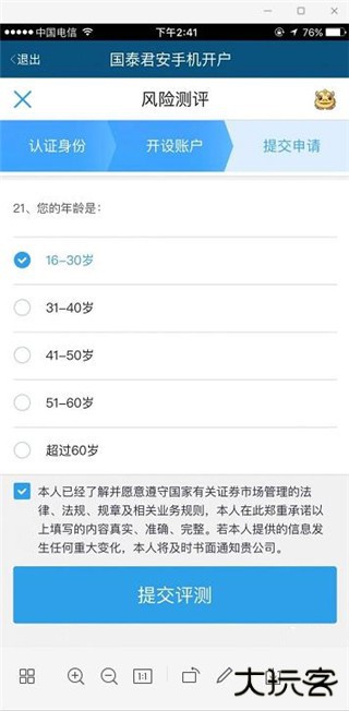 4、勾选我已阅读,同意协议并提交风险测评