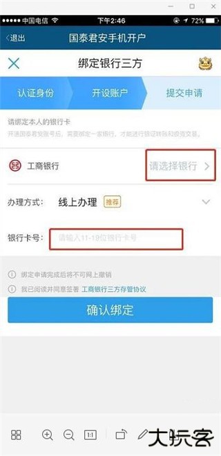 6、选择银行三方输入卡号绑定并确认