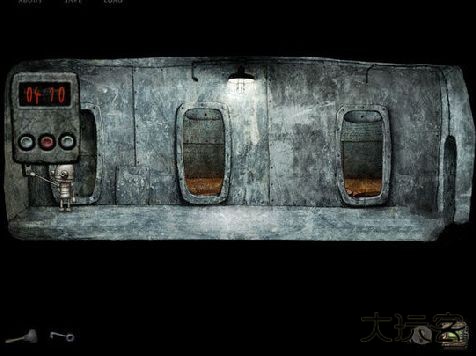 最左边的门是关着的,点了墙上的开关,弹出一个密码锁,需要密码!我仔仔细细的看了这个通道的所有墙面还有地上,没发现密码!难道在警卫室有什么提示?可是警卫室也没有!好吧,既然解决不了,我们就出监狱,反正记着有个类似时钟的密码还不知道!