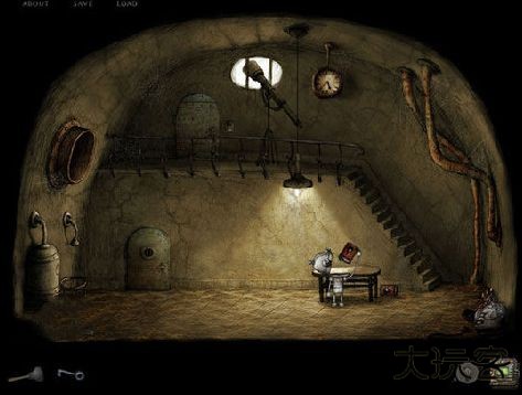 开场的动画,已经暗示我们必须从右上角的管道出去,很明显,我们需要到上面去!但是最右侧有个门,而且墙上有把钥匙,是不是有钥匙可以开启门呢?先试试,好像不行,钥匙留着再说!