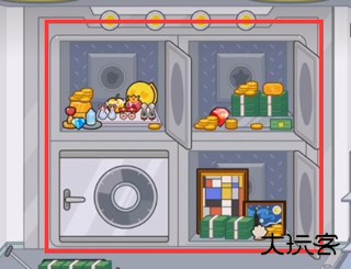 来到银行二楼,打开保险柜,根据图形找到钻石,红心,星星以及贝壳并依次放入,保险柜就会打开,里边有很多宝物。