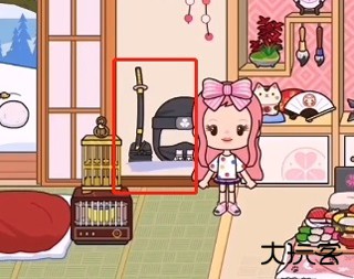 来到温泉小屋,把挨着招财猫的黄色壁纸撕开,里面藏了套忍者服装。