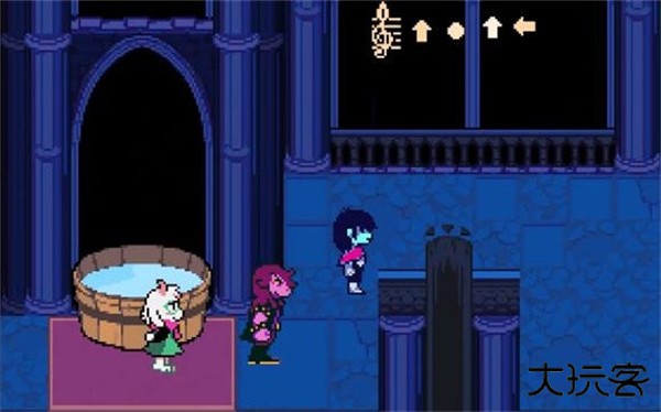 2、接着去城堡右边区域去找第二段密码,到达一盆大水附近后会有一场战斗,这里的战斗比较简单,躲避弹幕即可。获得胜利后就可以拿到第二段密码。