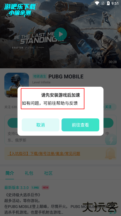 4、如果您的手机没有安装这款游戏,会弹窗提醒,需要先安装,因为uu加速器不带下载游戏的功能。