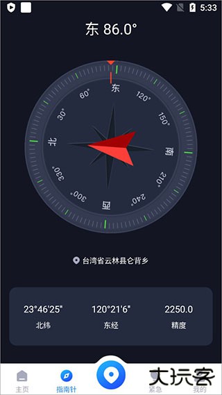 3、返回首页,点击下方的指南针可看到现在的方向;