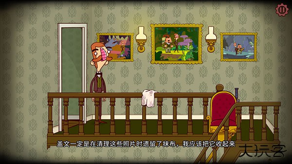 3、下楼后发现男仆盖文被锁住了,帮他开门,开门前会听到一阵怪异的声响,盖文出来后解释在“帮飞船泄气”。