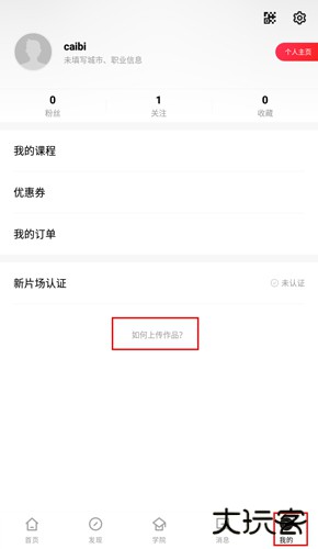 1、在“我的”页面点击“如何上传作品?”按钮;