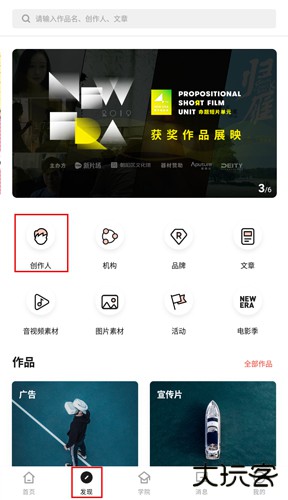 1、在“发现”页面点击“创作人”;