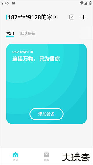 1、打开并登录手机上的vivo智慧生活app,进入首页处点击【添加设备】
