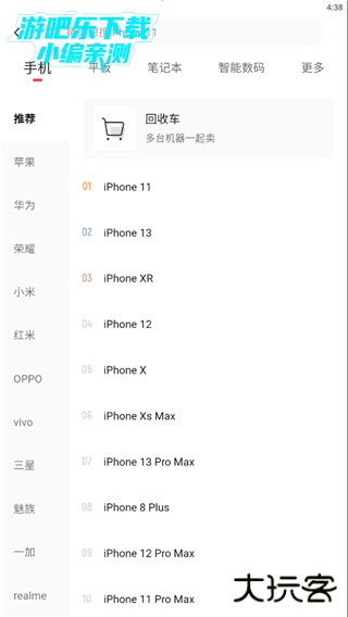 1、打开转转App官方版,在转转回收内点击手机回收;