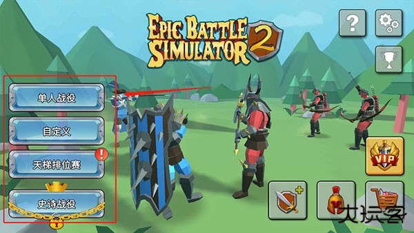 1、在主界面有单人战役、自定义、天梯排位赛和史诗战役四种模式,其中史诗战役是需要通过单人战役第50关才可以解锁的,小编这里以单人战役模式给大家大致介绍一下游戏玩法