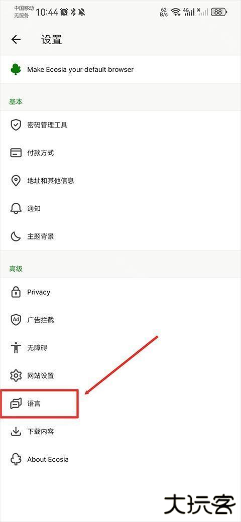 3、进入设置页面后点击语言功能。