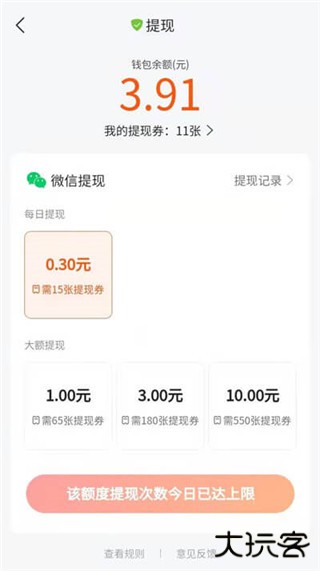 3、进入提现界面,然后先绑住微信号,再点击提现金额,最后点击【确认提现】。
