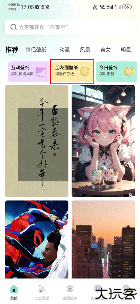1、在app壁纸界面内点击朋友圈壁纸功能